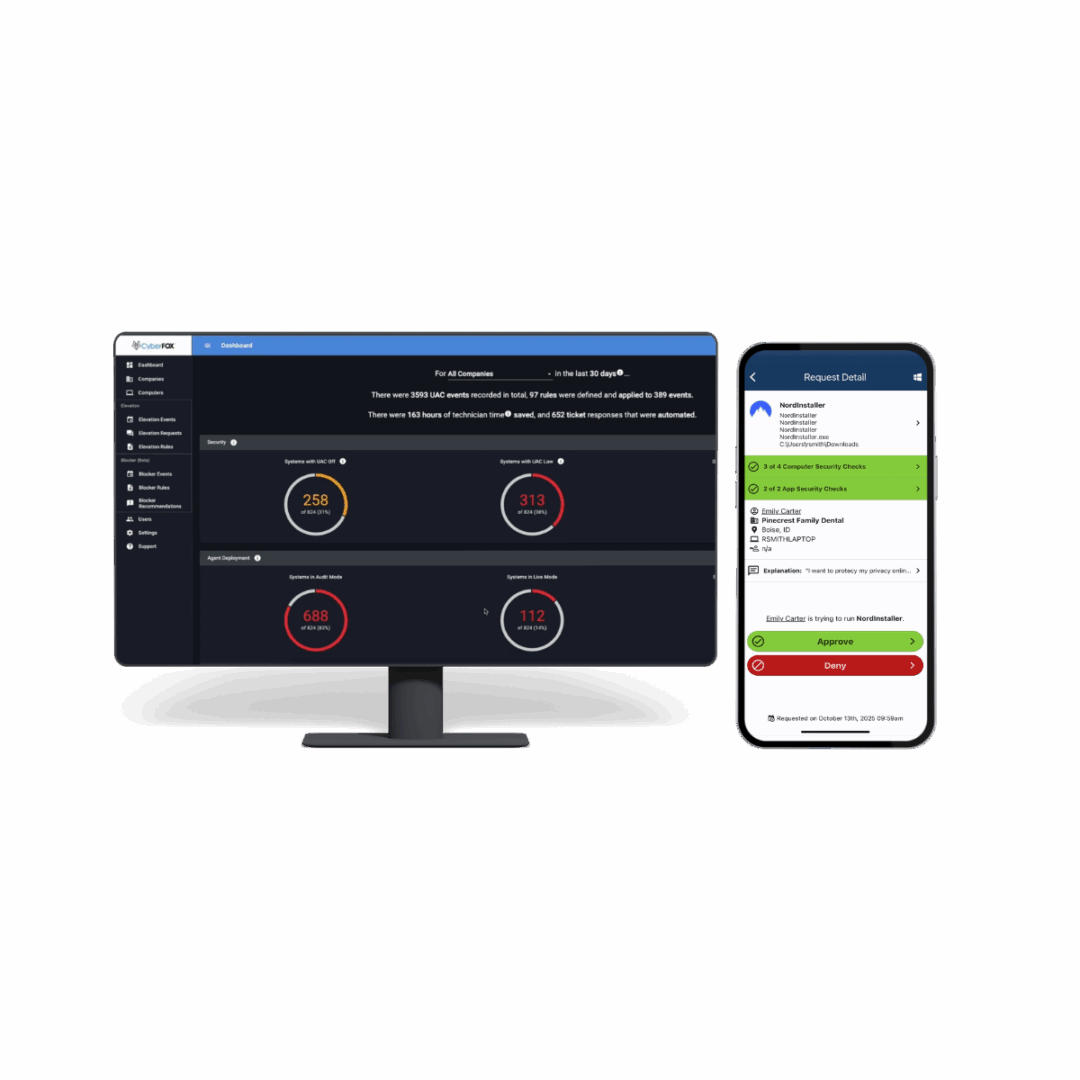 Our Privileged Access Management (PAM) solution for MSPs and IT professionals allows you to remove local admin rights and secure end users without frustrating or slowing them down.